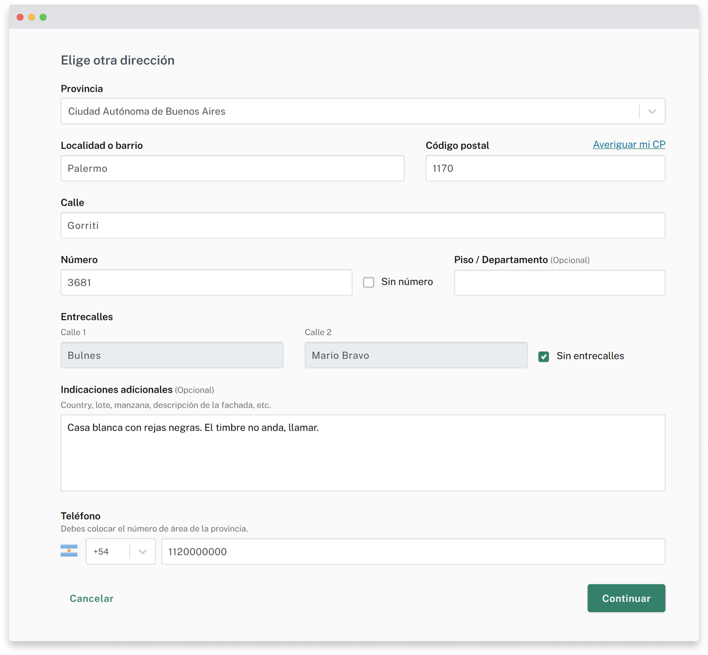 Te sugerimos incluir las entrecalles y las indicaciones adicionales para ayudar a que la entrega sea exitosa.